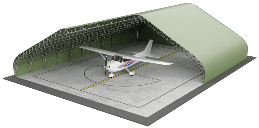 An aircraft hangar offers an efficient and cost-effective solution for storing and maintaining airplanes and helicopters. Built with lightweight steel frames and a durable fabric cover, these hangars provide dependable protection against rain, snow, wind, UV radiation, and temperature fluctuations. They can be fitted with wide sliding or vertical-lift doors, allowing easy access for aircraft of varying sizes.