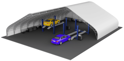 Fabric-covered hangars from LUXTENT provide a practical and efficient solution for starting or expanding auto service shops, with floor areas optimized for your workflow. Contact us to receive a tailored layout, technical specification, and cost estimate that meets your business needs.