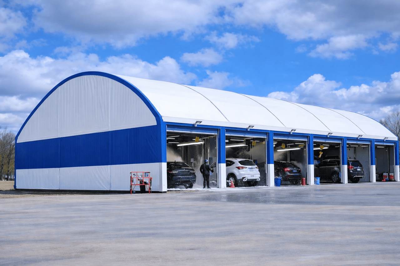 The clear-span design of fabric buildings makes them highly suitable for automotive service centers. They allow easy placement of detailing and wash bays, alignment and diagnostic areas, and tire service zones, while maintaining ample space for maneuvering SUVs and vans. The tall interior and distinctive exterior provide comfortable working conditions, room for vertical wheel storage, and space for racks and equipment. These hangars are ideal for auto repair shops that require wide drive-through lanes, flexible layouts, rapid reconfiguration of work areas, and the ability to quickly expand as the business grows.