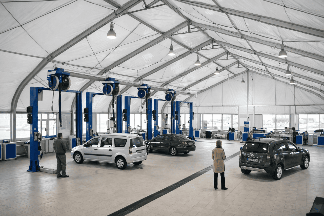 For quickly launching a new auto service center or expanding an existing facility, fabric-covered LUXTENT hangars provide ready-to-use, safe, and cost-effective spaces suitable for year-round operation. These steel-frame structures with durable PVC covers can be installed in just a few days, easily scaled, and configured to include service bays, storage areas, and customer spaces without excessive construction costs.