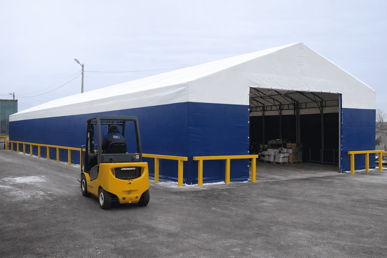Installation takes only a few weeks, with the option to extend the structure using modular segments and add doors, ventilation, or lighting as required. The durable PVC membrane shields stored goods from rain and temperature changes, making fabric warehouses an efficient and budget-friendly solution for expanding storage capacity and responding to seasonal demand or rising cargo volumes.